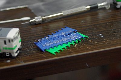 キハ40-350のパーツは成型色で白色、キハ40-400はグレーでした。