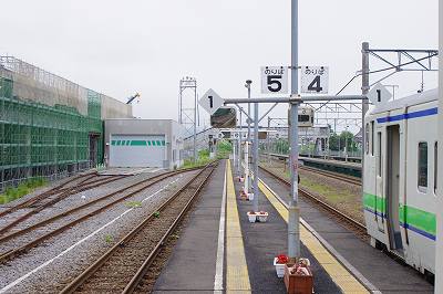 木古内駅ではすぐ横に新幹線の路線の建設が進んでいます。