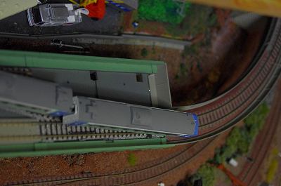 数年前に高架で列車を走らせるために購入した高架プレートで瞬間接着剤で固定していたため、切り離すことができない。(駅の有効長を重視する中、片側PL541-15になったのもこれが本当の原因。)