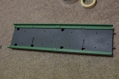 高架プレートですが、せっかくバラストのモールドらしきのがあるのに成型色が緑色で再現されてない。