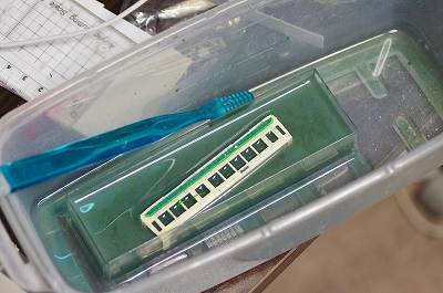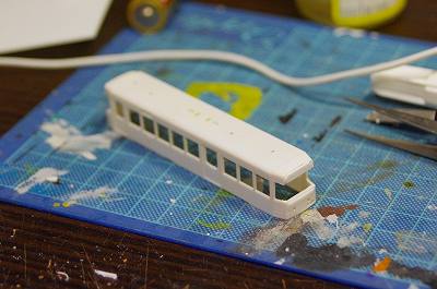 運転台上のへこみをプラ板で埋めます。
